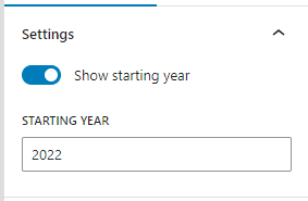 if ( ! empty( $attributes['startingYear'] ) && ! empty( $attributes['showStartingYear'] ) ) {