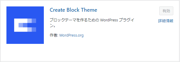 必須ではありませんが、ついでにテーマ作成時に使用するプラグイン「Create Block Theme」もインストールしておきます。