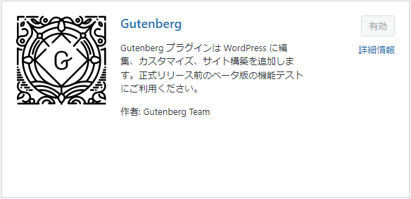 →「Gutenberg」と検索→今すぐインストール→有効化