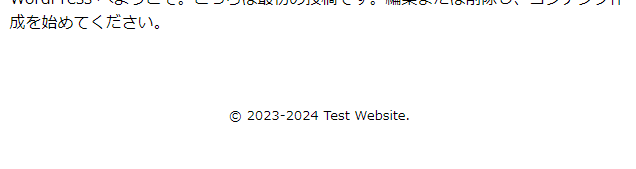 フロント側のフッターを再読込して、公開年が表示されたことを確認します。