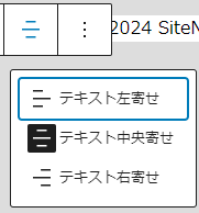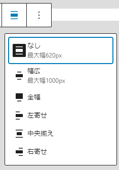 | icon | text,links など(詳しくはリンクより。SVGで指定も可能) | Dashiconスラッグまたはカスタム SVG アイコン https://developer.wordpress.org/resource/dashicons/#align-wide | “icon”: “smile” | |