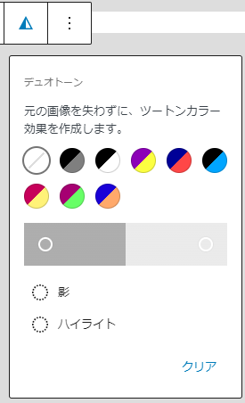 | filter.duotone | true false | false | ![]() | “filter”: { “duotone”: true } | |